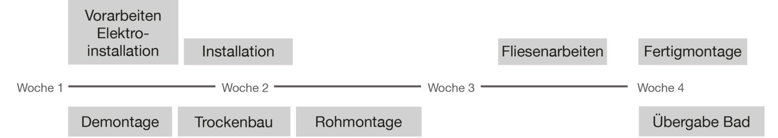 Wie stellen Sie sich Ihr neues Bad vor? Eine luxuriöse Wellness-Oase, ein praktisches Familienbad, ein cleveres Raumwunder oder ein barrierefreies Bad? Gemeinsam mit Ihnen machen wir Ihre individuellen Wünsche und Vorstellungen wahr. Profitieren Sie von unserer umfassenden Beratung und durchdachten Planung. Holen Sie sich Inspiration und Ideen in unserer ELEMENTS-Ausstellung. Und verlassen Sie sich auf unsere hochwertige und termingerechte Ausführung. Dank unserer langjährigen Erfahrung und Kompetenz in der Badsanierung können Sie sich entspannt zurücklehnen. Klare Prozesse sorgen dafür, dass Sie Ihr neues Wohlfühlbad möglichst schnell genießen können. Vor Staub und Schmutz während der Sanierung müssen Sie keine Angst haben. Wir haben uns mit dem Einsatz von Absauggeräten und Staubschutztüren auf eine staubarme Badmodernisierung spezialisiert.